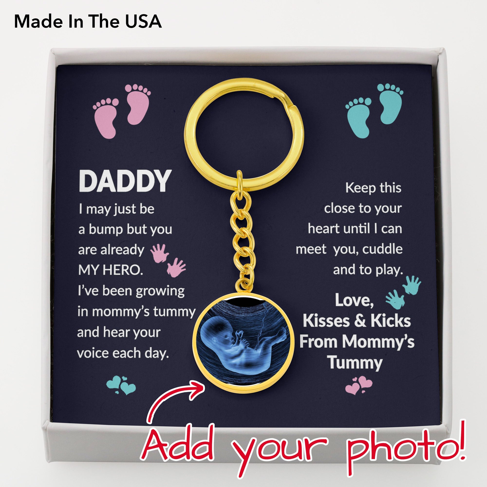 Daddy I Hear Your Voice Each Day Sonogram Keepsake Keychain Gift From Baby Bump | First Father's Day | Daddy To be Gift