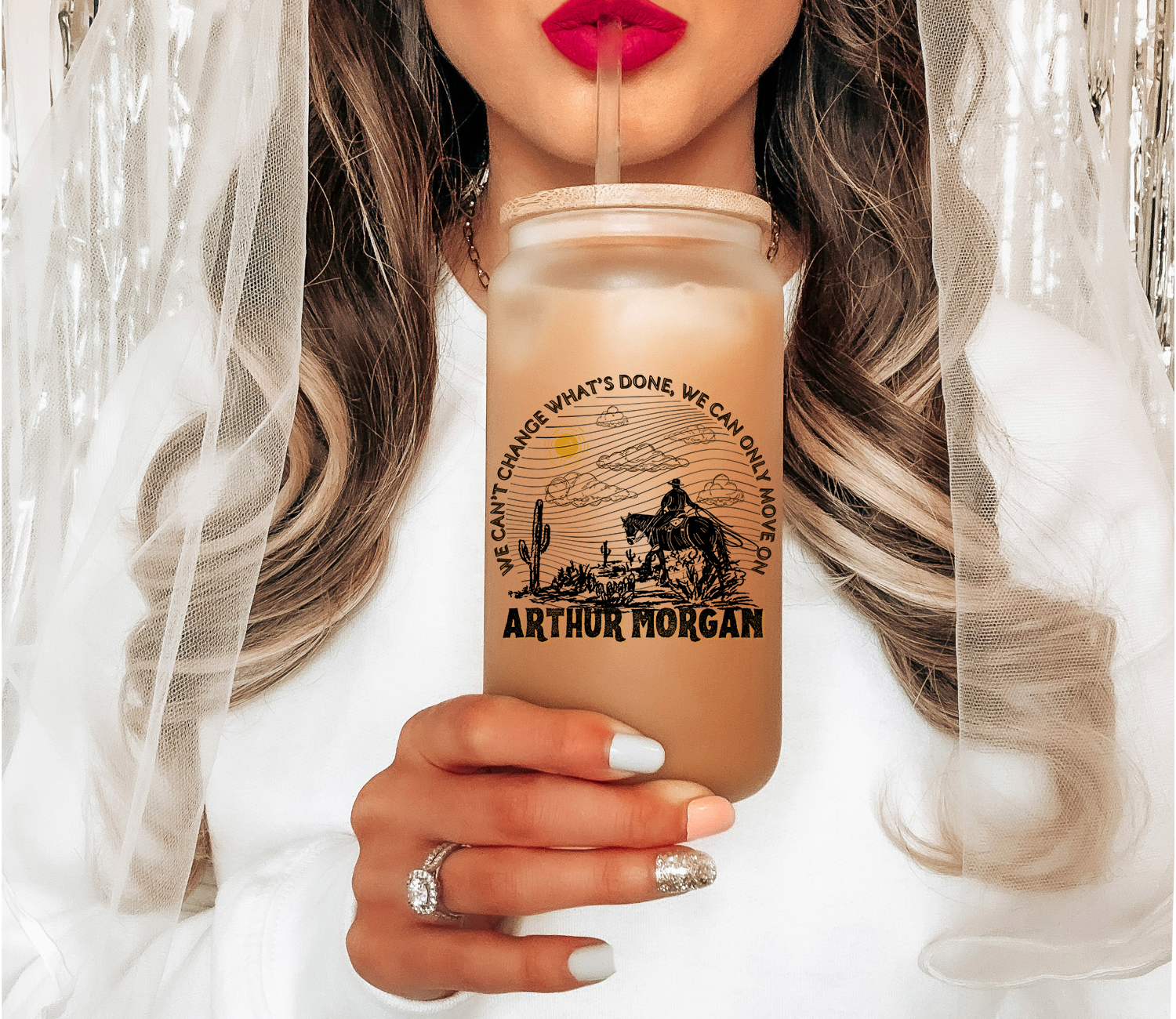 Introducing our Arthur Morgan Glass Mug Tumbler, available in 16oz size.
