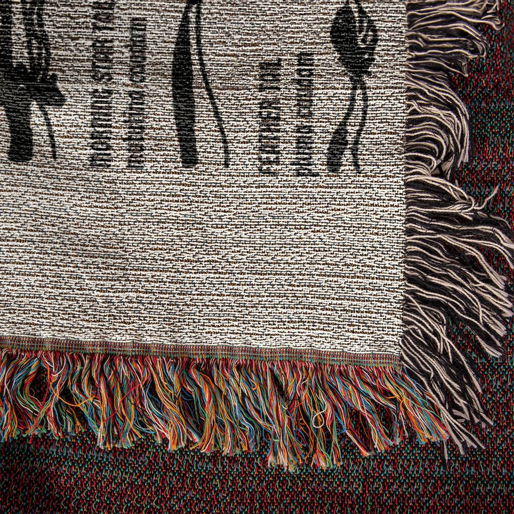 This piece is lovingly woven on a loom with cozy, 100% cotton yarn and features your unique design. This would make an ideal gift for your beloved partner, family members, or dear friends on special occasions like birthdays, anniversaries, or any event where you want to express your love and appreciation unforgettably.