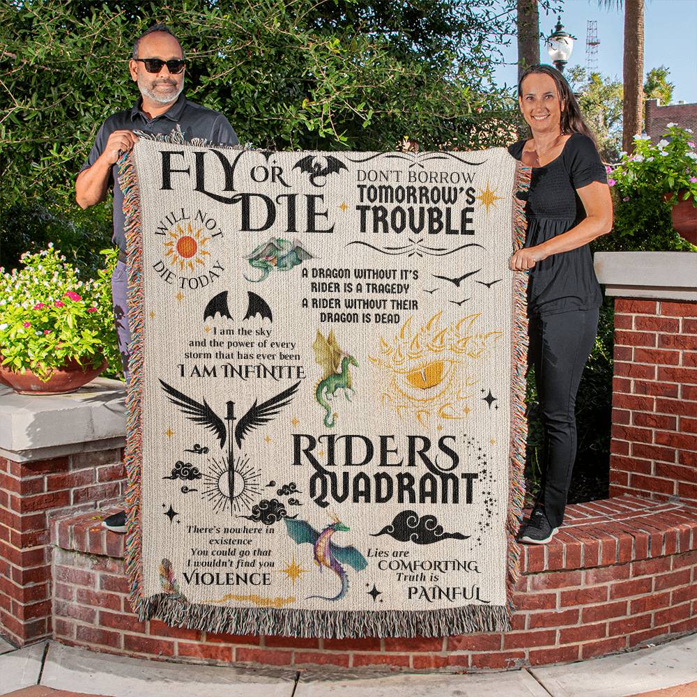 Create a unique keepsake with our Fly or Die Dragon RiderWoven Blanket.
