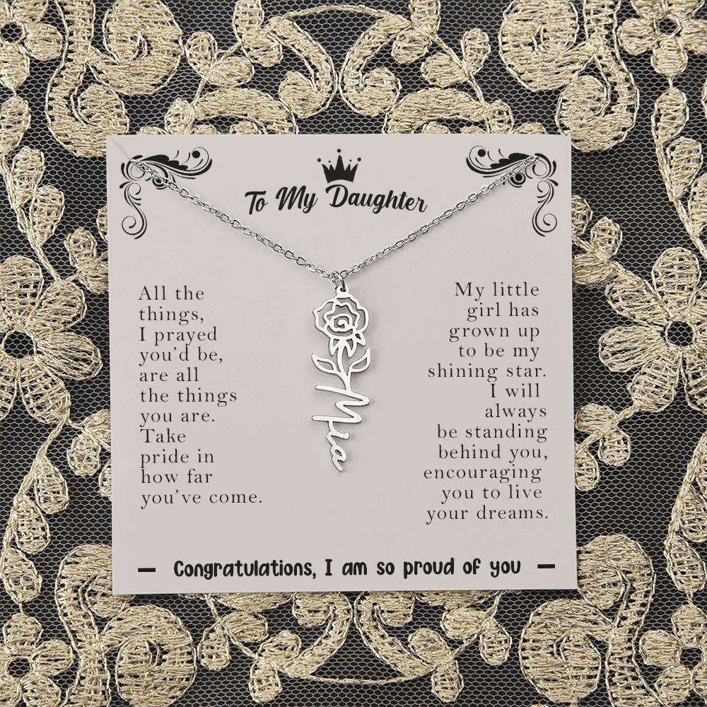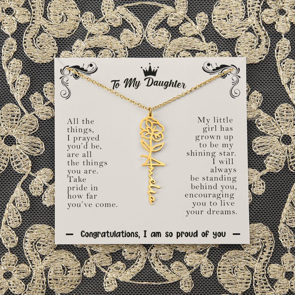 Need a gift that's as unique as she is? Then look no further than our Flower Name Necklace! With a customizable birth flower design, this necklace is a meaningful addition to any jewelry collection. Whether you're dressing up for a special occasion or simply want to add some flair to your everyday look, this necklace is perfect for your special someone. Handcrafted from high-quality materials, it is both stylish and durable. So why wait? Personalize your own floral name necklace today!