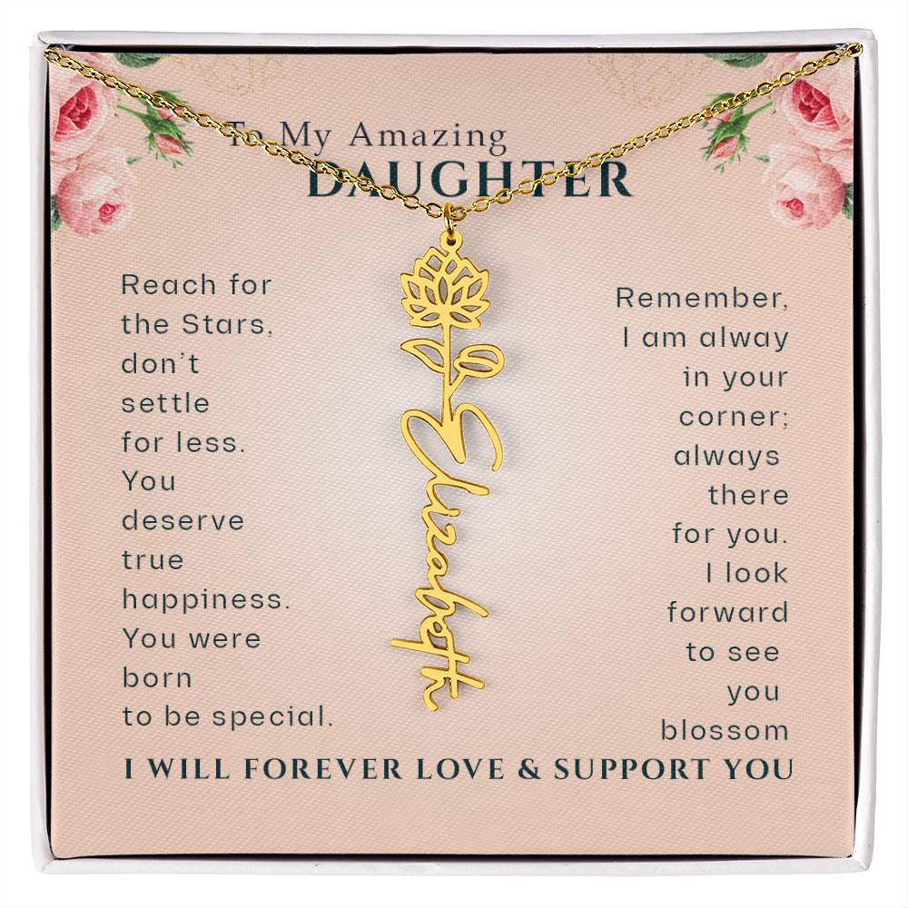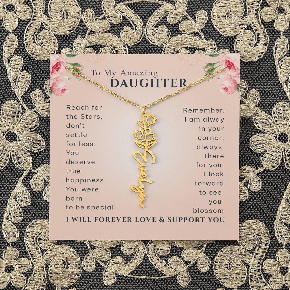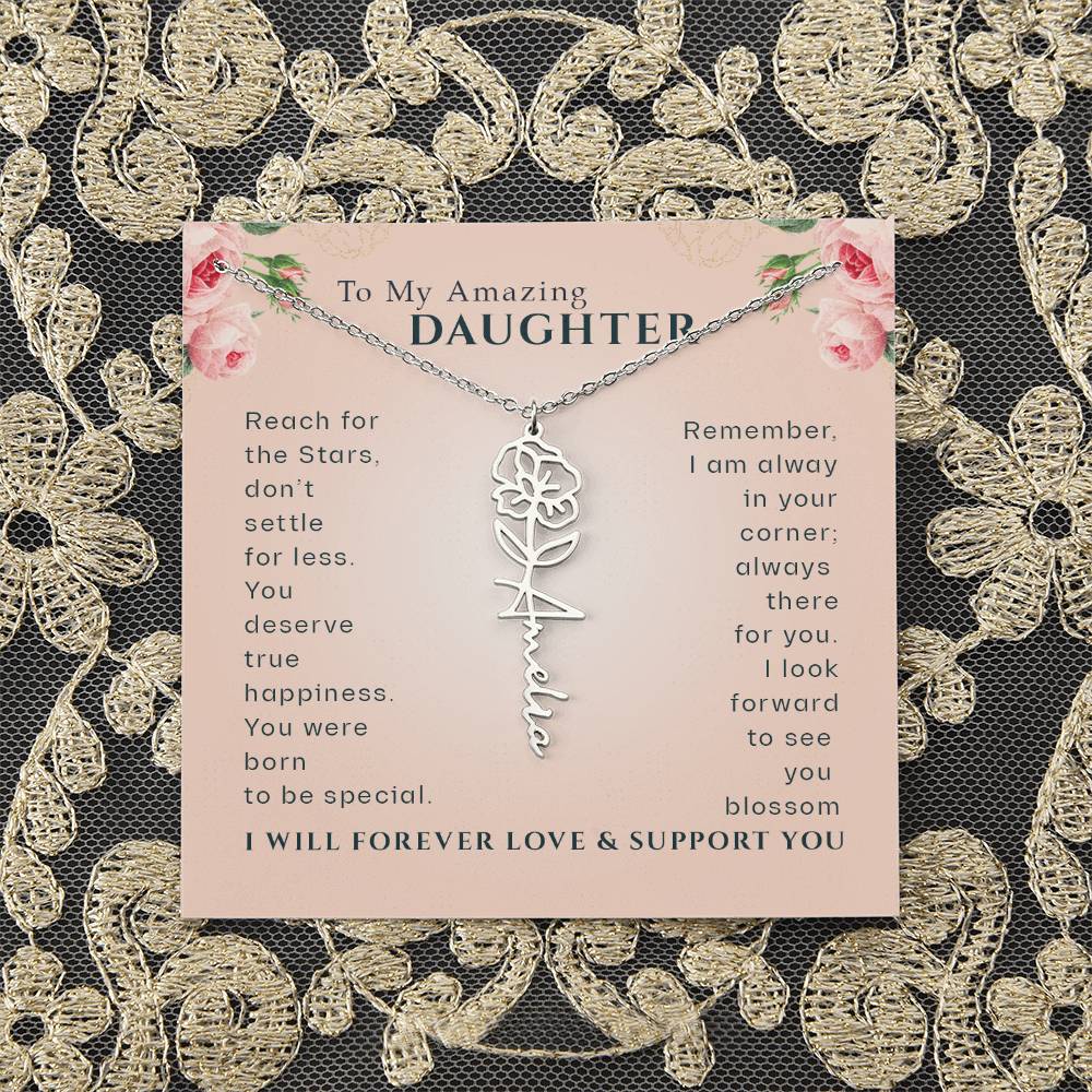 Need a gift that's as unique as she is? Then look no further than our Flower Name Necklace! With a customizable birth flower design, this necklace is a meaningful addition to any jewelry collection. Whether you're dressing up for a special occasion or simply want to add some flair to your everyday look, this necklace is perfect for your special someone. Handcrafted from high-quality materials, it is both stylish and durable. So why wait? Personalize your own floral name necklace today!
