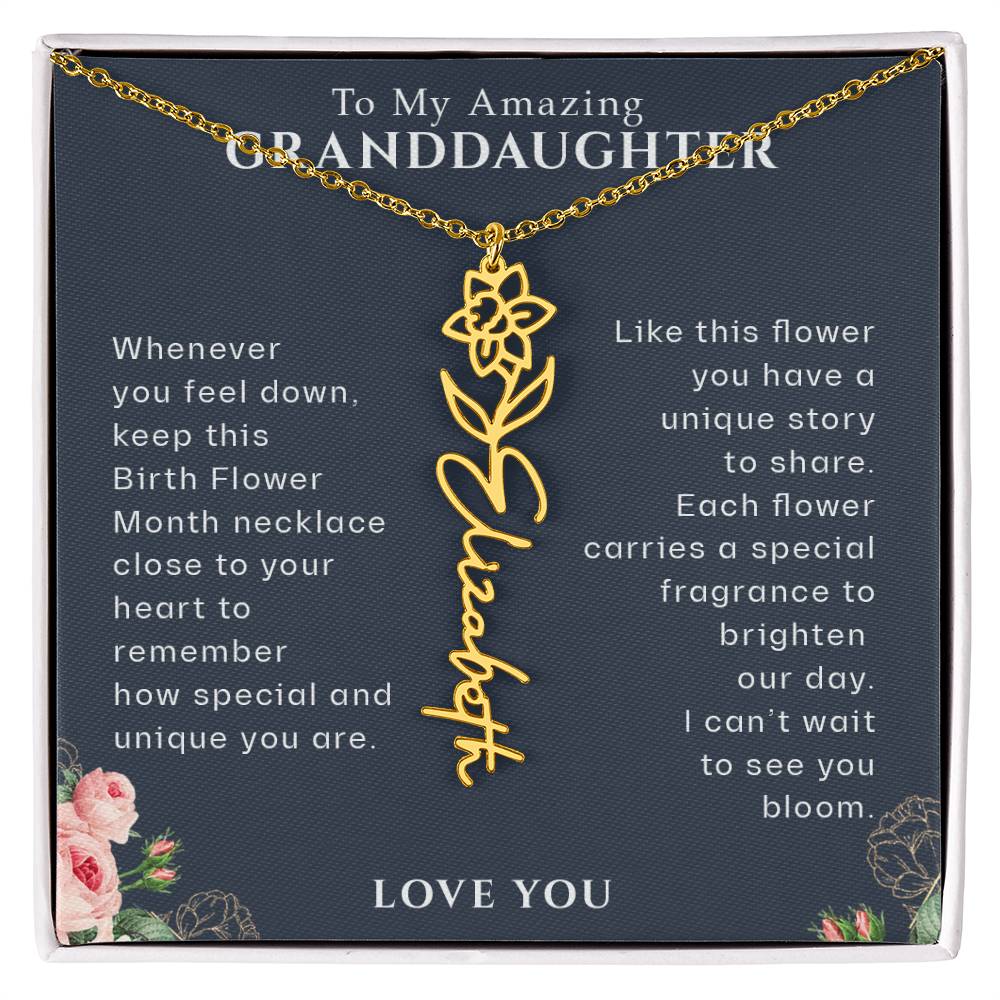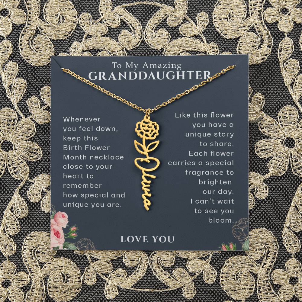 Need a gift that's as unique as she is? Then look no further than our Flower Name Necklace! With a customizable birth flower design, this necklace is a meaningful addition to any jewelry collection. Whether you're dressing up for a special occasion or simply want to add some flair to your everyday look, this necklace is perfect for your special someone. Handcrafted from high-quality materials, it is both stylish and durable. So why wait? Personalize your own floral name necklace today!
