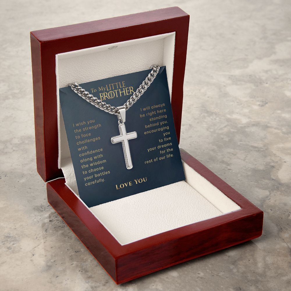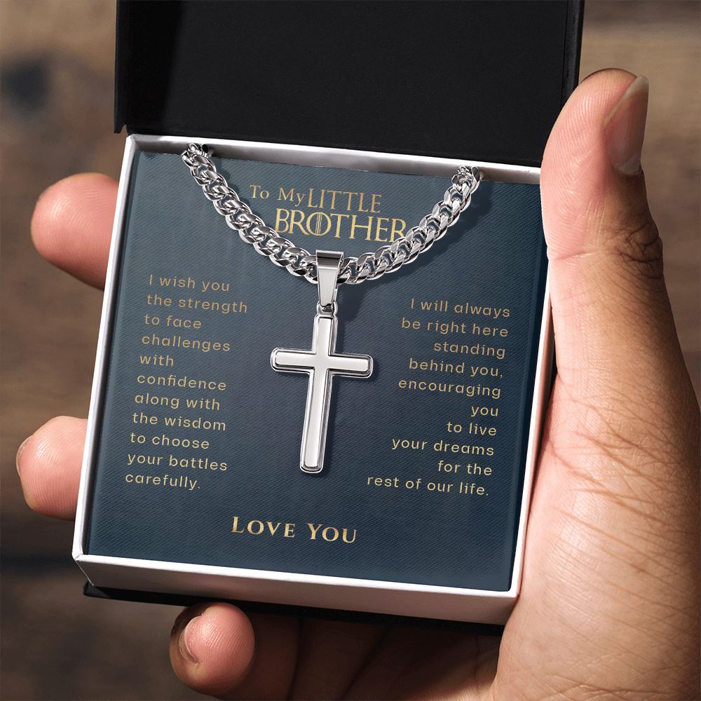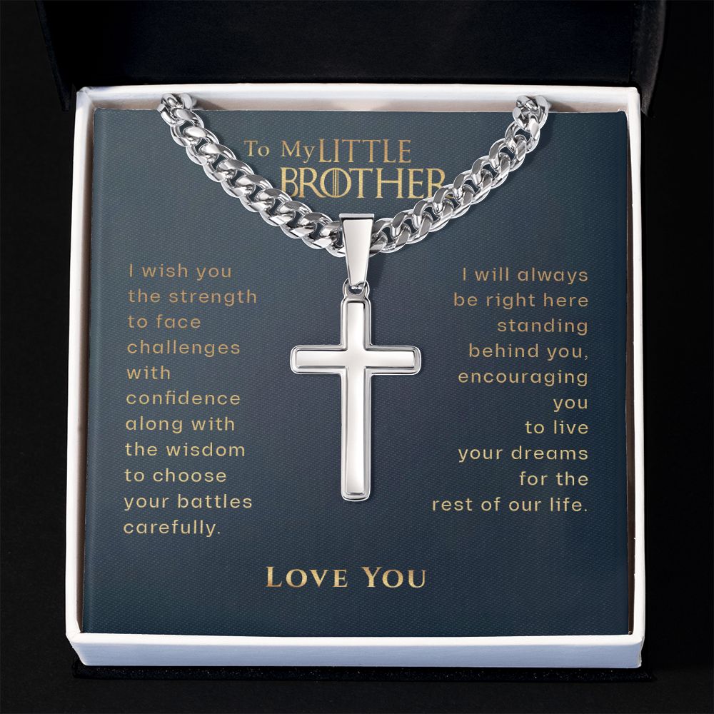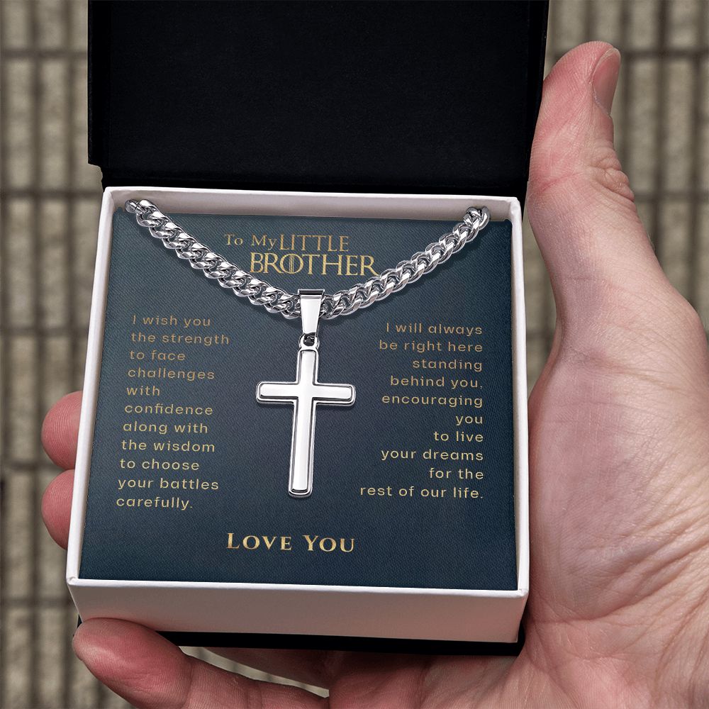Introducing the "Personalized Little Brother" Cross Necklace - A Meaningful Gift for Your Brother's Milestones: