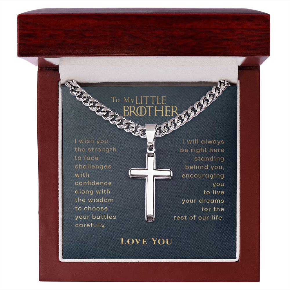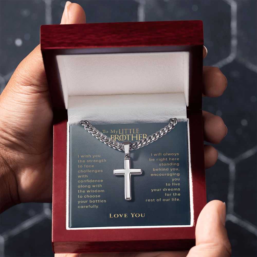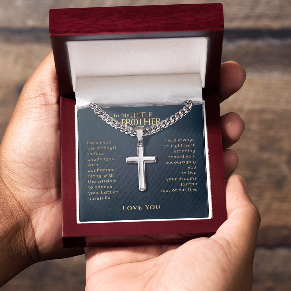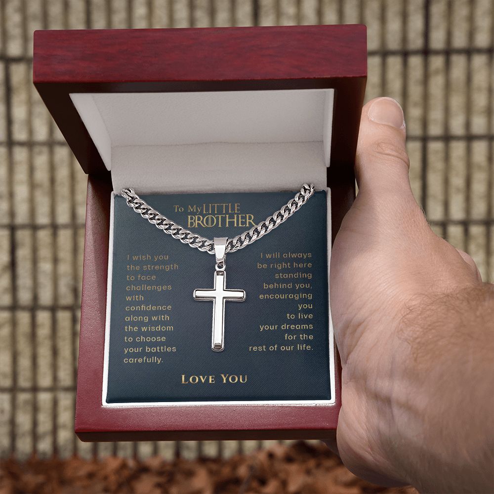 Introducing the "Personalized Little Brother" Cross Necklace - A Meaningful Gift for Your Brother's Milestones: