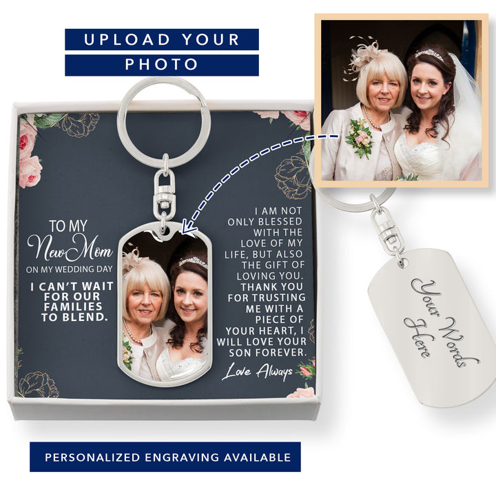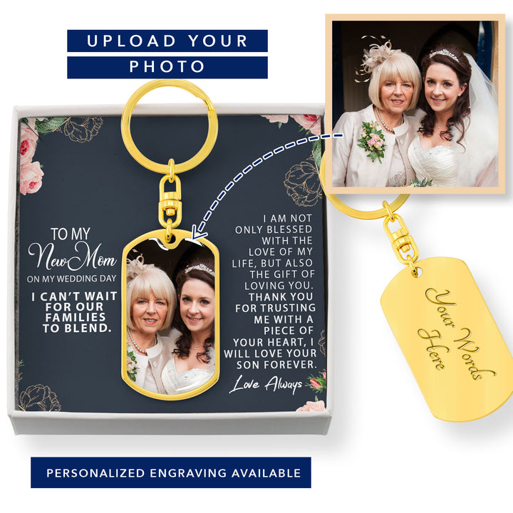 This Dog Tag Photo Keychain is the perfect wedding keepsake for your mother-in-law!