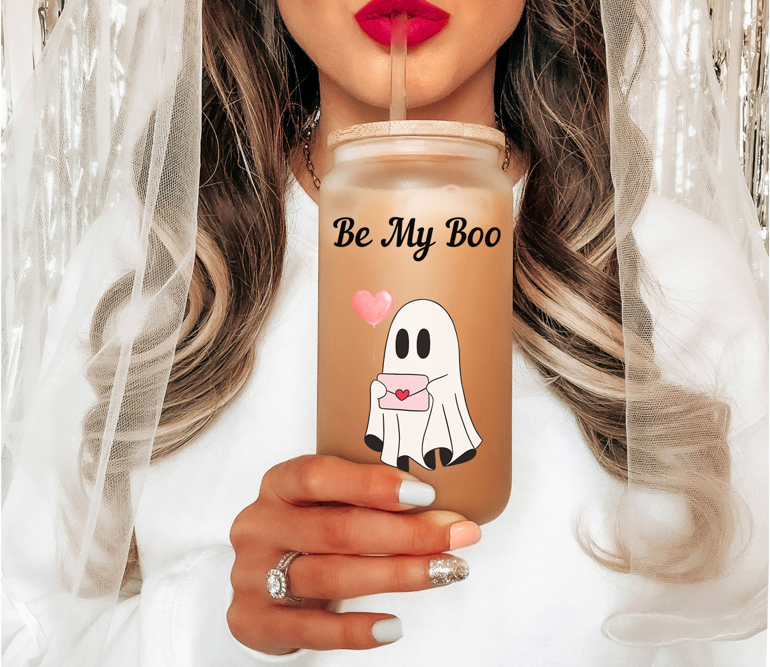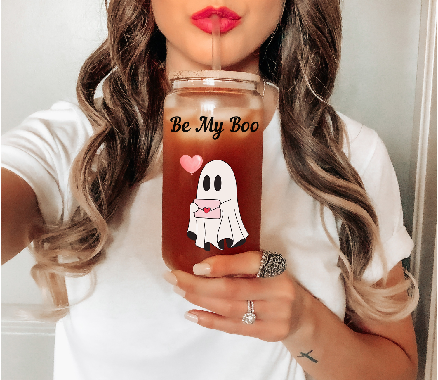 Introducing our Be My Boo Glass Mug Tumbler, available in 16oz size.