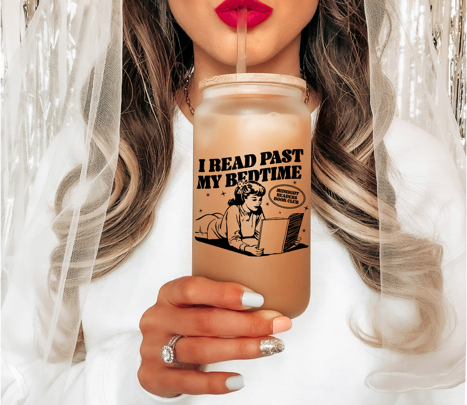 Introducing our I Read Past My Bedtime Tumbler Glass Mug, available in 16oz size.