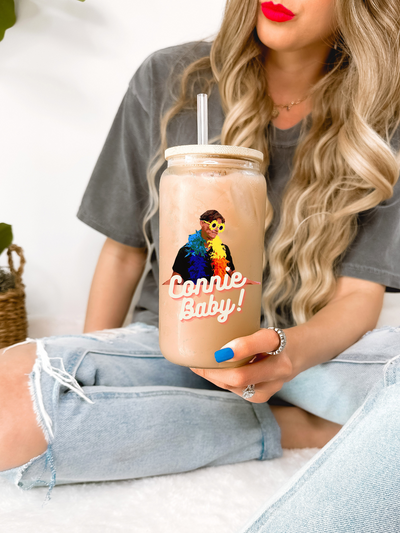 Introducing our Connie Baby Glass Mug Tumbler, available in 16oz size.
