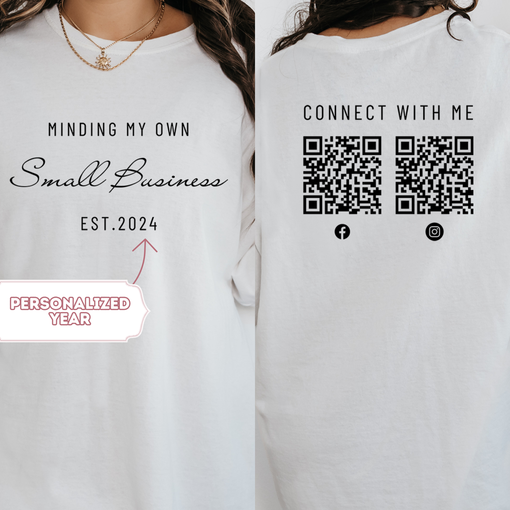 Personalized Small Business Owner Shirt, Minding My Own Small Business Custom Social Media QR Code Shirts, Entrepreneur Gift