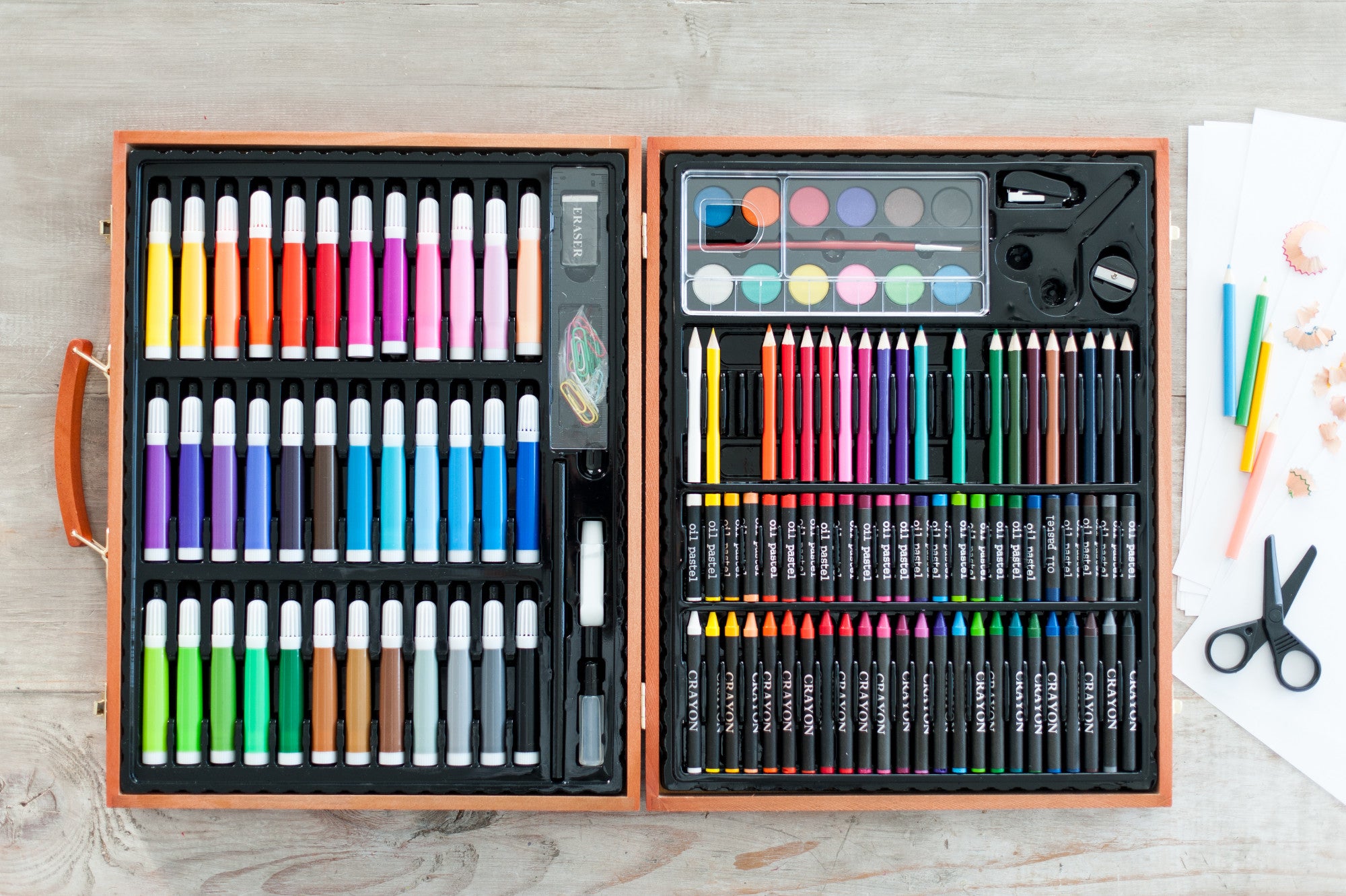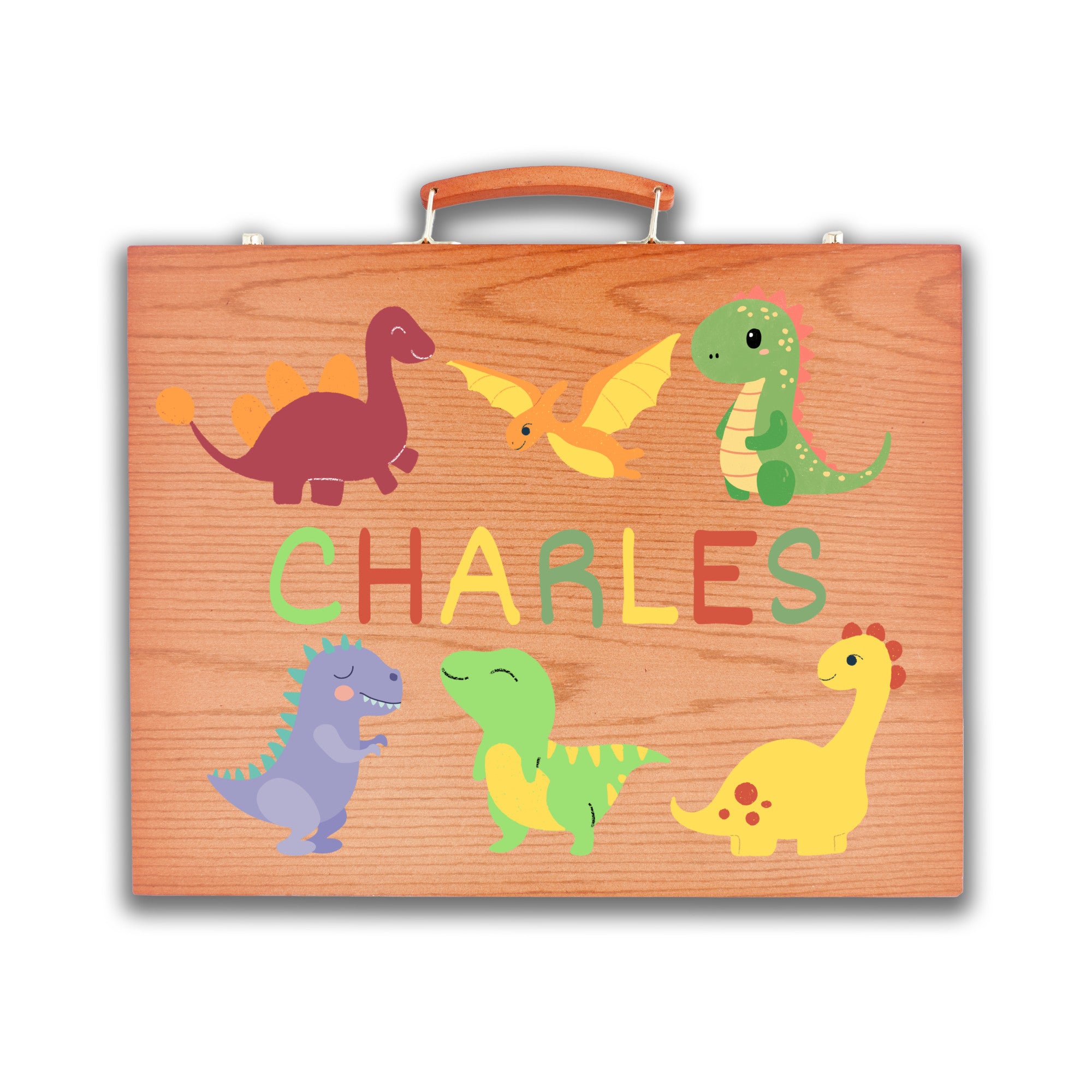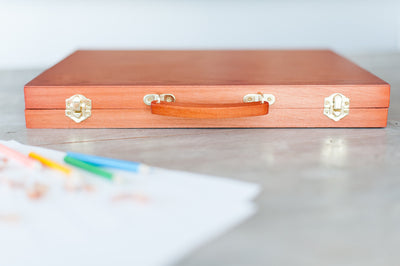 If you have a budding artist at home, building a foundation of supplies is that important first step. We are here to help! Our personalized, 150-piece art kit has everything your young artist needs to get started with sketching, painting, and coloring. Contents include crayons, oil pastels, colored pencils, watercolors, markers, brush, palette, stapler, scissors, sharpener, glue, ruler, and more! Plus, it's all packed in a convenient wooden carrying case that helps kids stay organized and is easy to grab on the go. Each kit is printed with top-quality UV ink that will last a lifetime. Your youthful artist will love it and you will enjoy watching them shape their artistic ability while building their confidence in the process. These make excellent gifts for children, grandchildren, and friends!