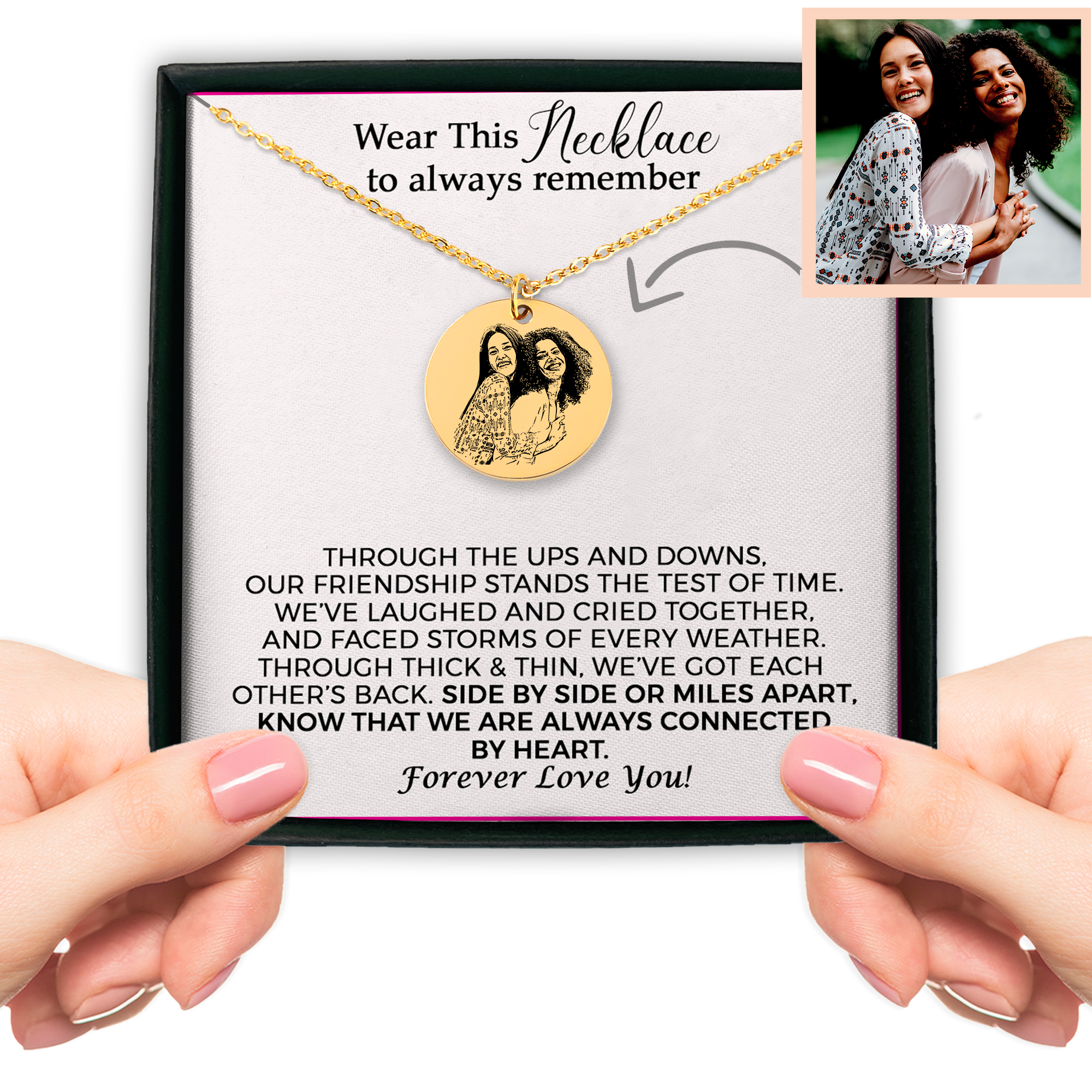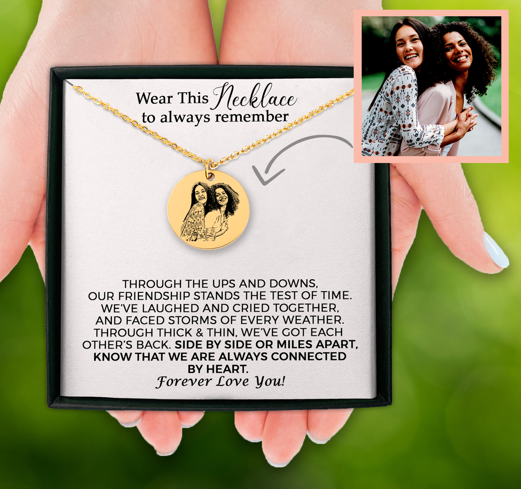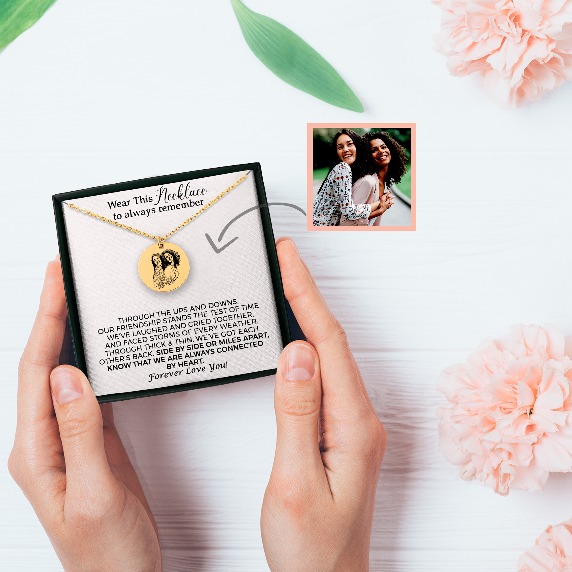 Give this beautiful Personalized Portrait necklace to your best friend to remind her how special she is. Show your support with this perfect and meaningful gift today!
