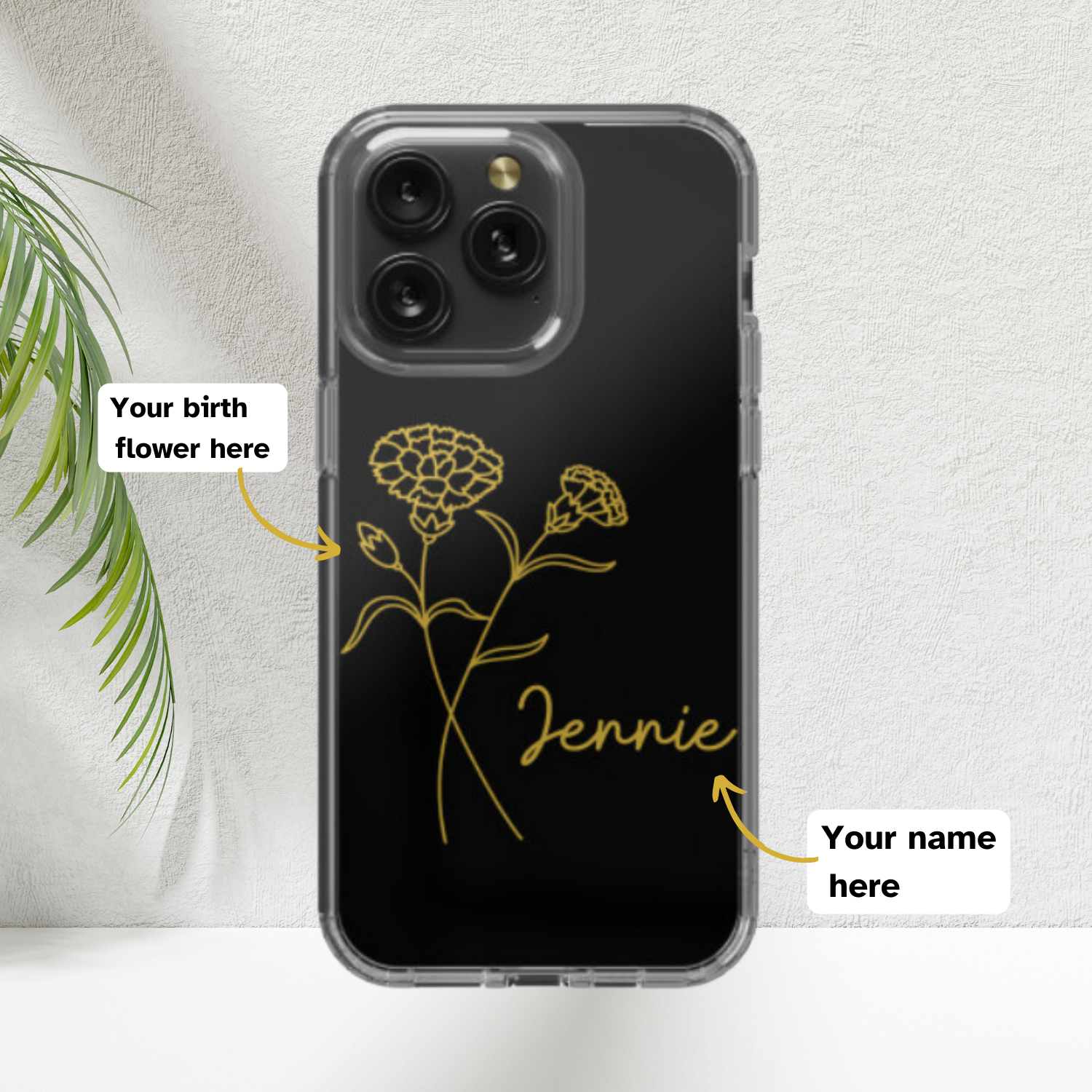 Elevate your iPhone 15 Pro experience with our meticulously crafted Personalized Birth Flower Clear iPhone 15 Pro Case. Designed to fit your device like a glove, it provides robust protection against drops and scratches while maintaining a slim, elegant profile. Made from premium materials, this case ensures your iPhone 15 Pro stays in pristine condition, ready for any adventure. The precise cutouts grant easy access to all ports and buttons, while our diverse range of colors and designs lets you personalize your device to match your unique style. Discover the perfect blend of fashion and function – safeguard your iPhone 15 Pro in style with this exceptional clear phone case.