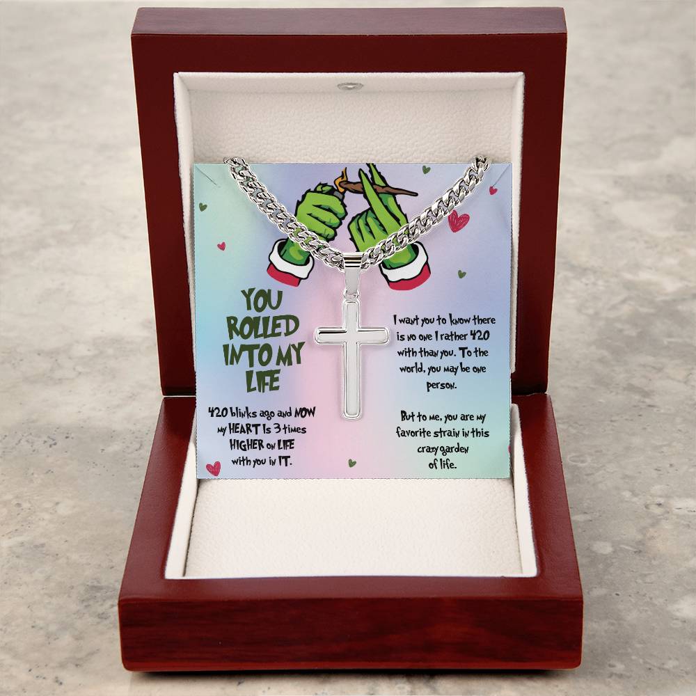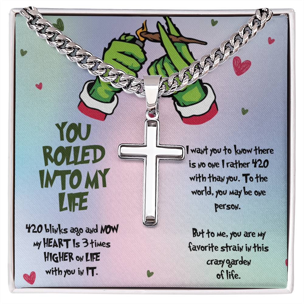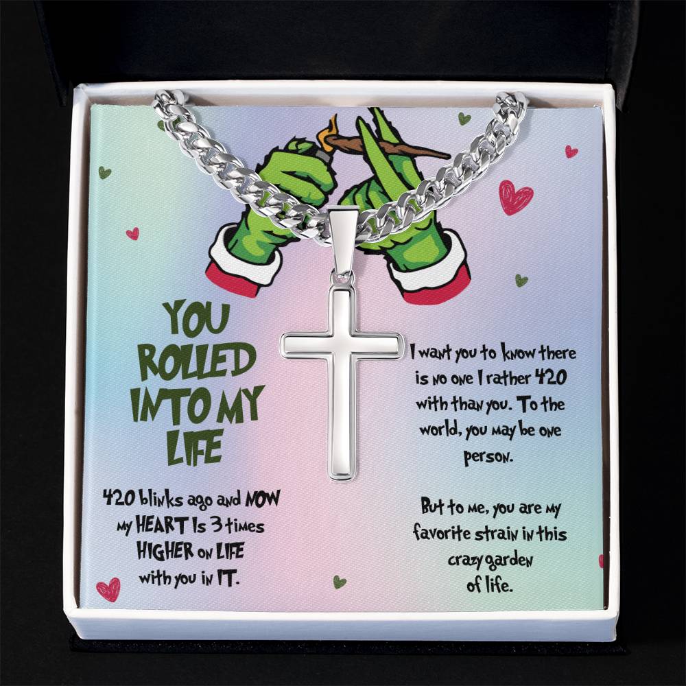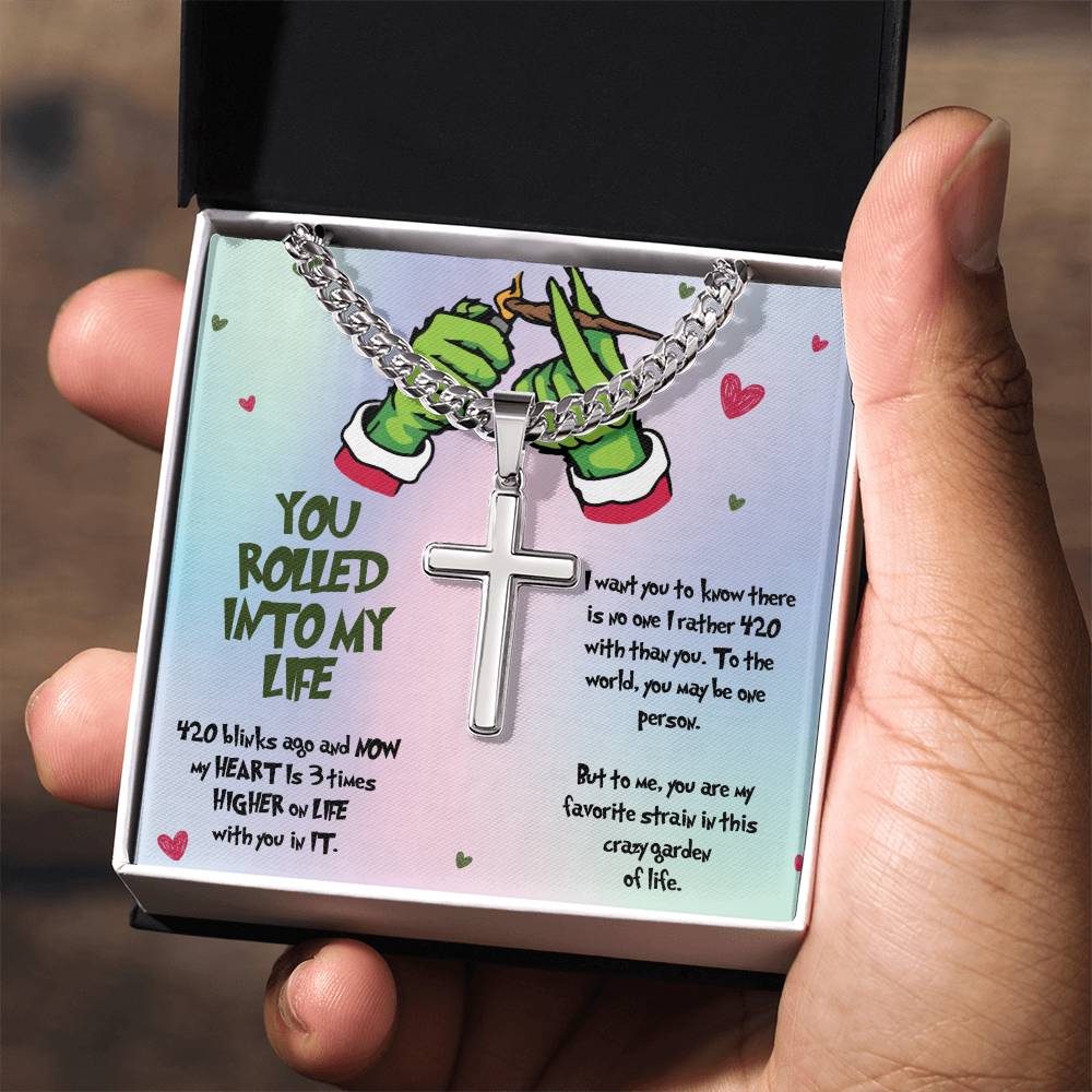Personalized Stoner Necklace for Boyfriend, You Rolled into My Life, Christmas Gift for Him, 420 Gifts for Men, Weed Marijuana Cannabis Jewelry