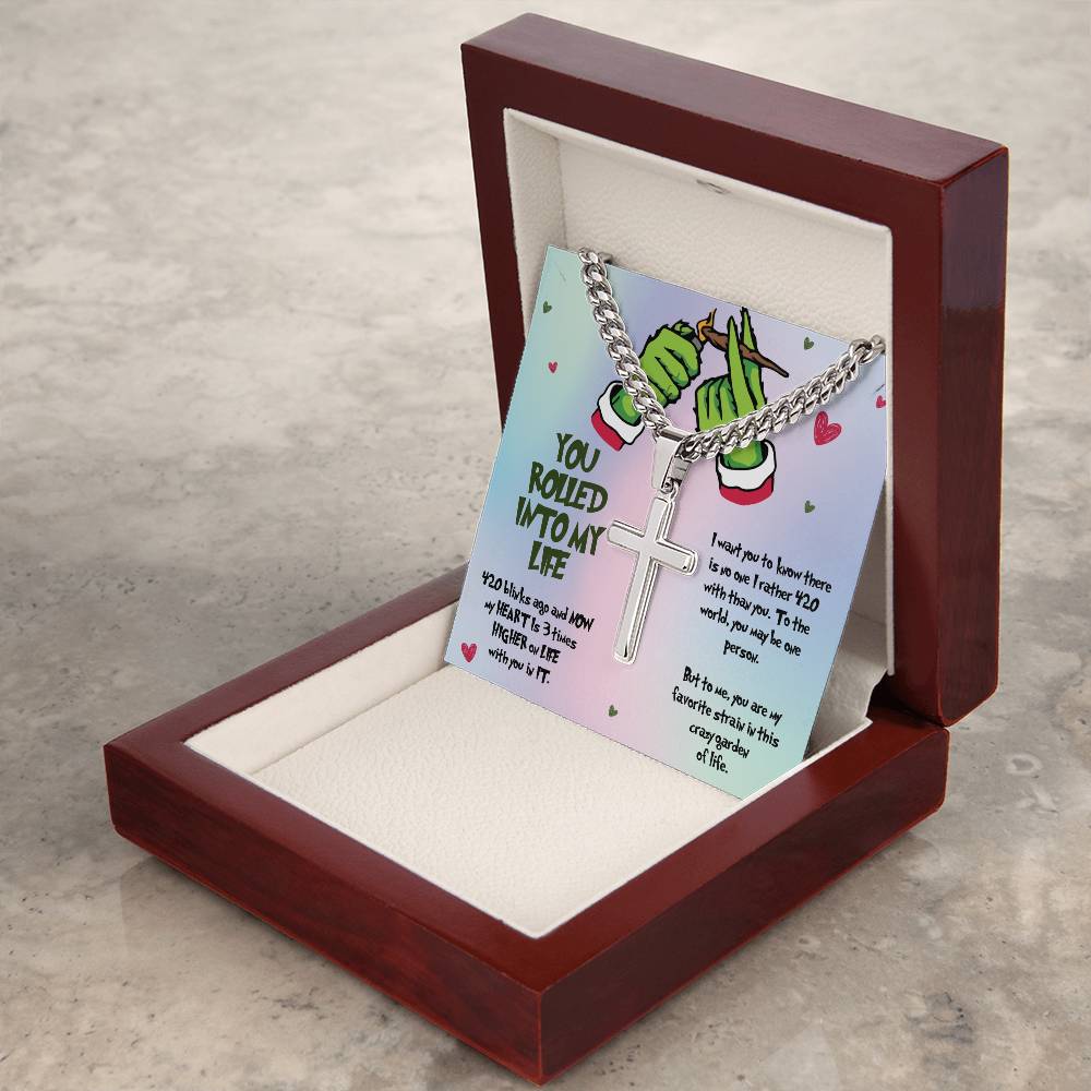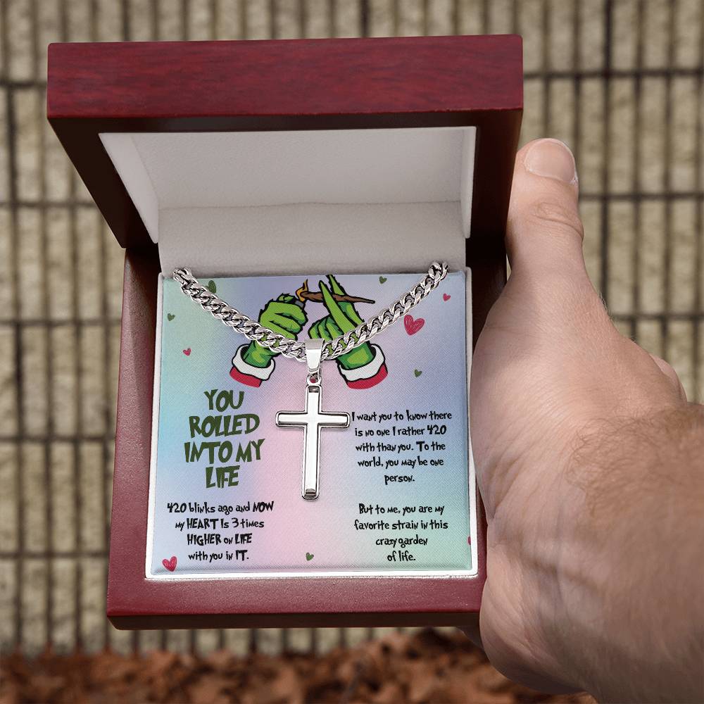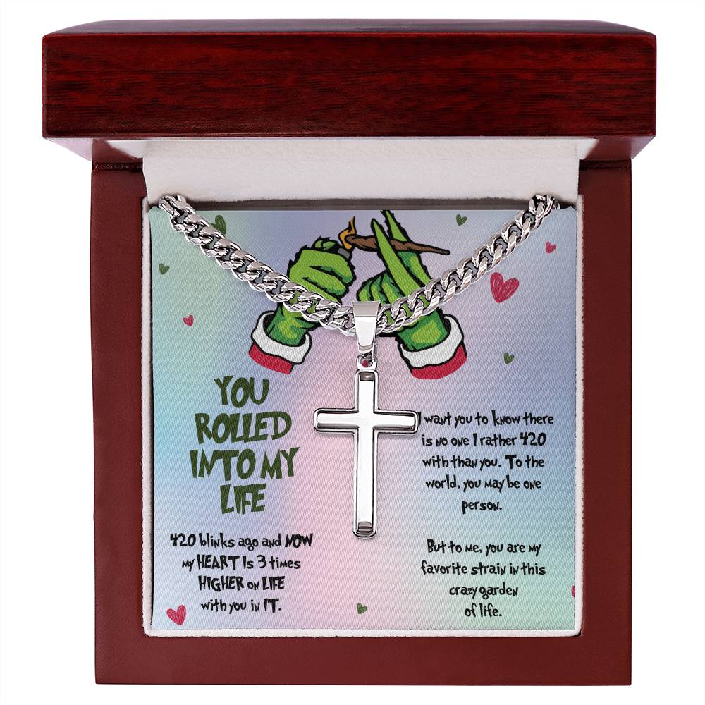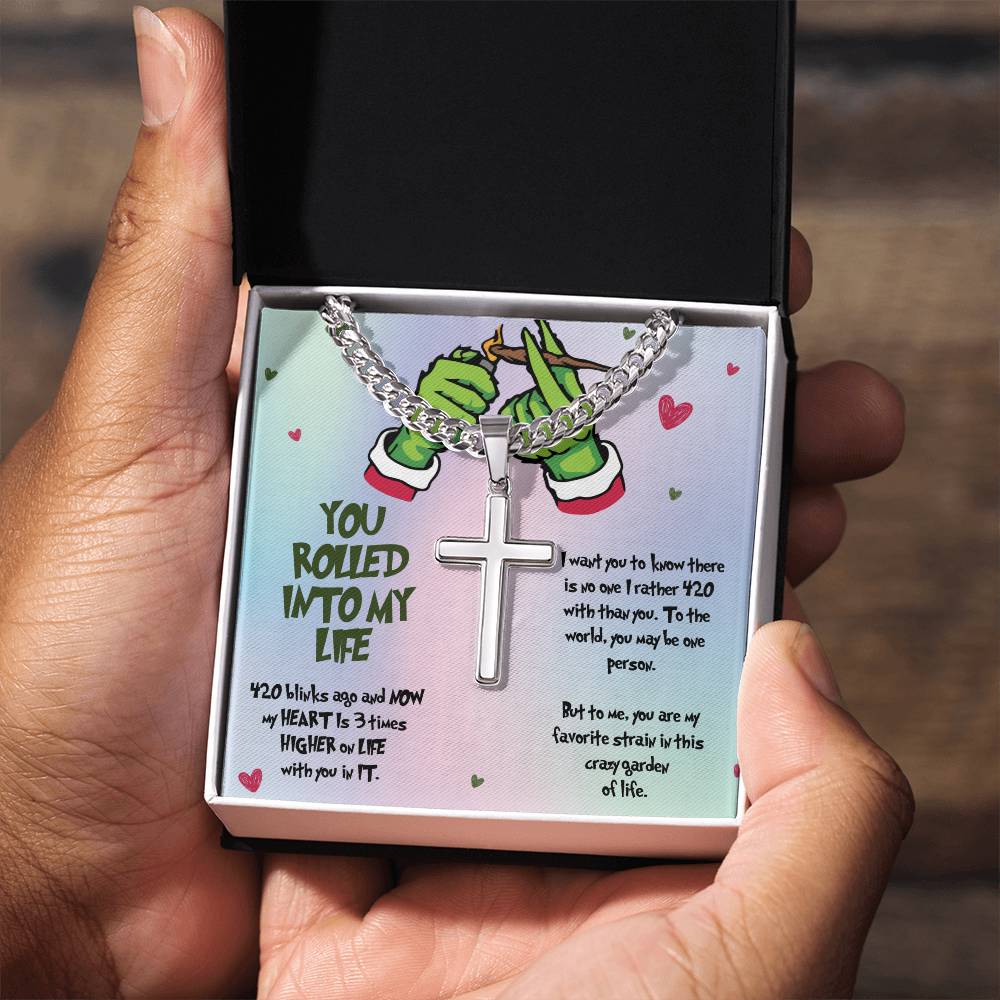 Personalized Stoner Necklace for Boyfriend, You Rolled into My Life, Christmas Gift for Him, 420 Gifts for Men, Weed Marijuana Cannabis Jewelry