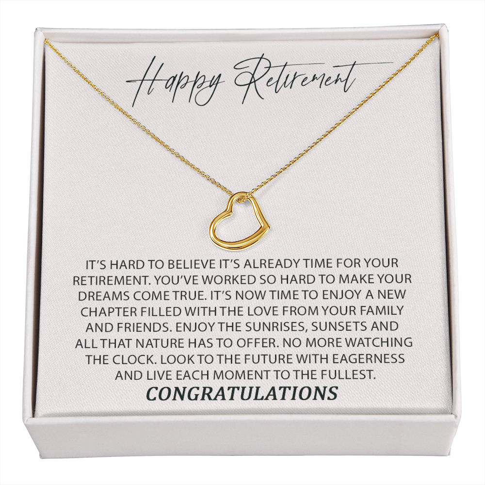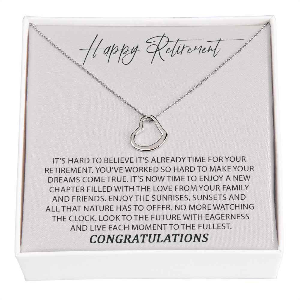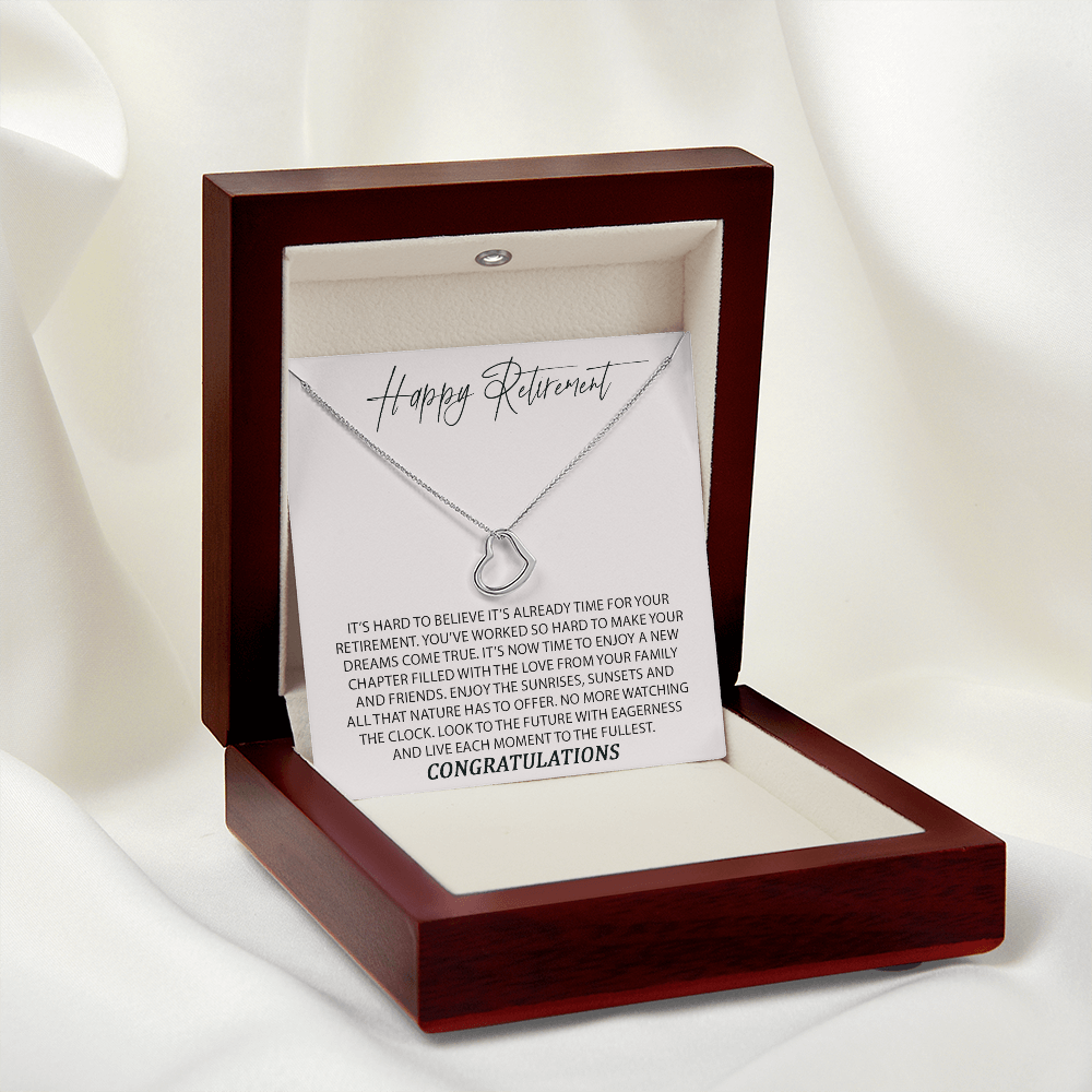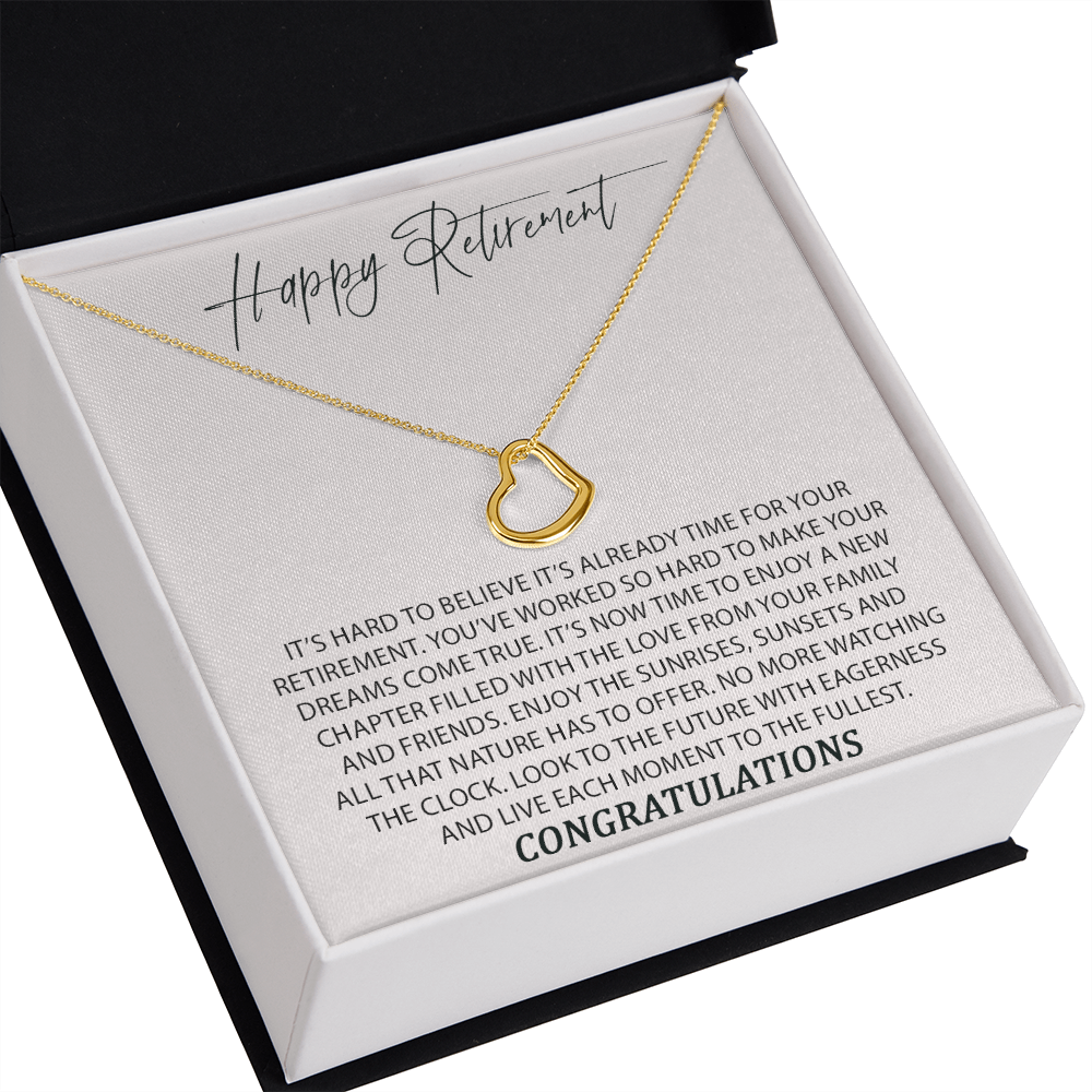 Congratulate her on her retirement with this elegant Delicate Heart Necklace. This Delicate Heart Necklace crafted in sterling silver and dipped in 14k white gold or 18k yellow gold represents pure elegance and timeless beauty just like her. Surprise her with this gorgeous gift today!
