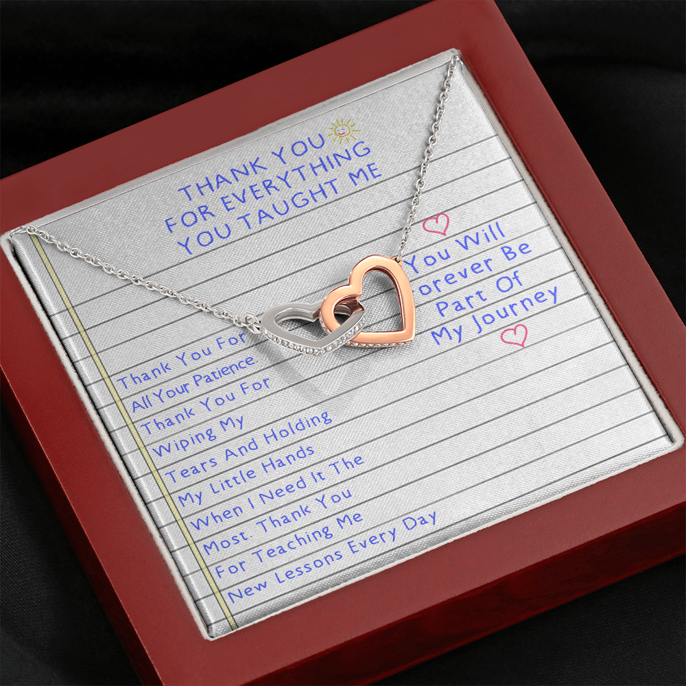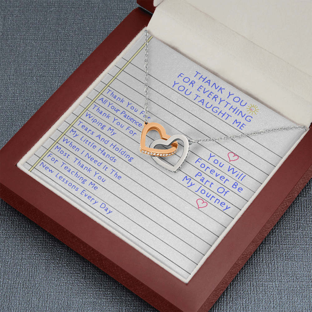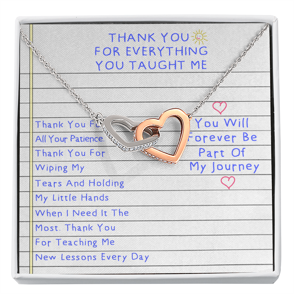 Thank You For Everything You Taught Me Interlocking Hearts Necklace | Teacher Appreciation Gift | Thank You Gift for Nanny | Necklace Gift for Babysitter | Caregiver Appreciation Gift