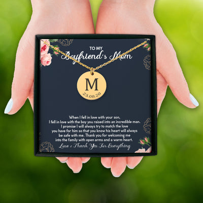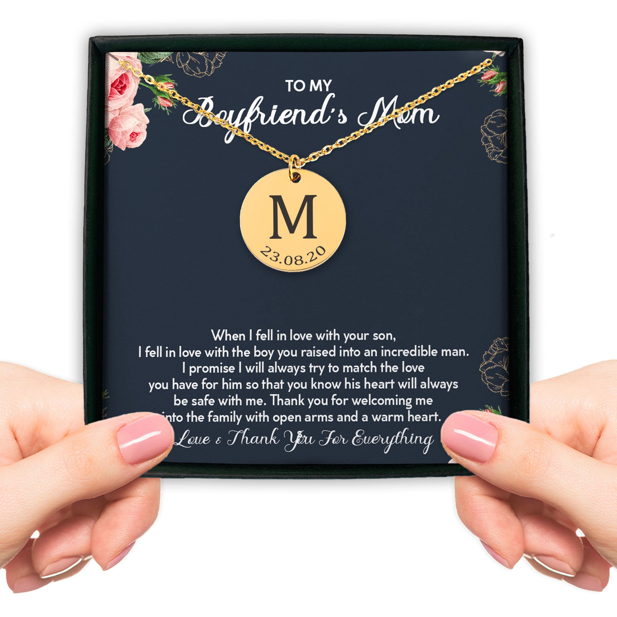 Item reads: To My Boyfriend's Mom When I fell in love with your son, I fell in love with the boy you raised into an incredible man. I promise I will always try to match the love you have for him so that you know his heart will always be with me. Thank you for welcoming me into the family with open arms and a warm heart. Love & Thank You For Everything