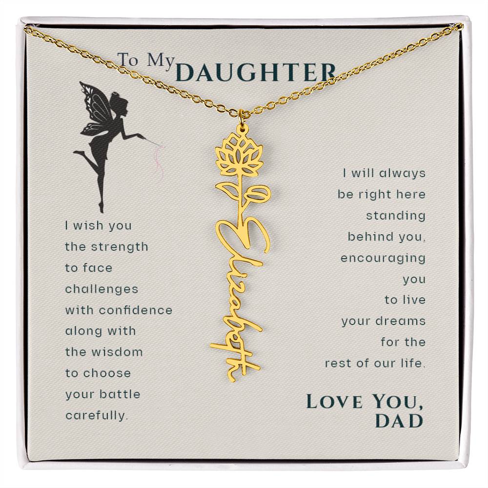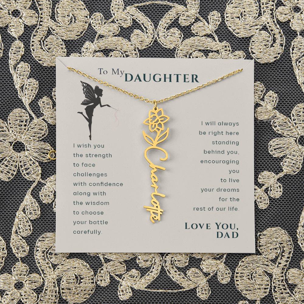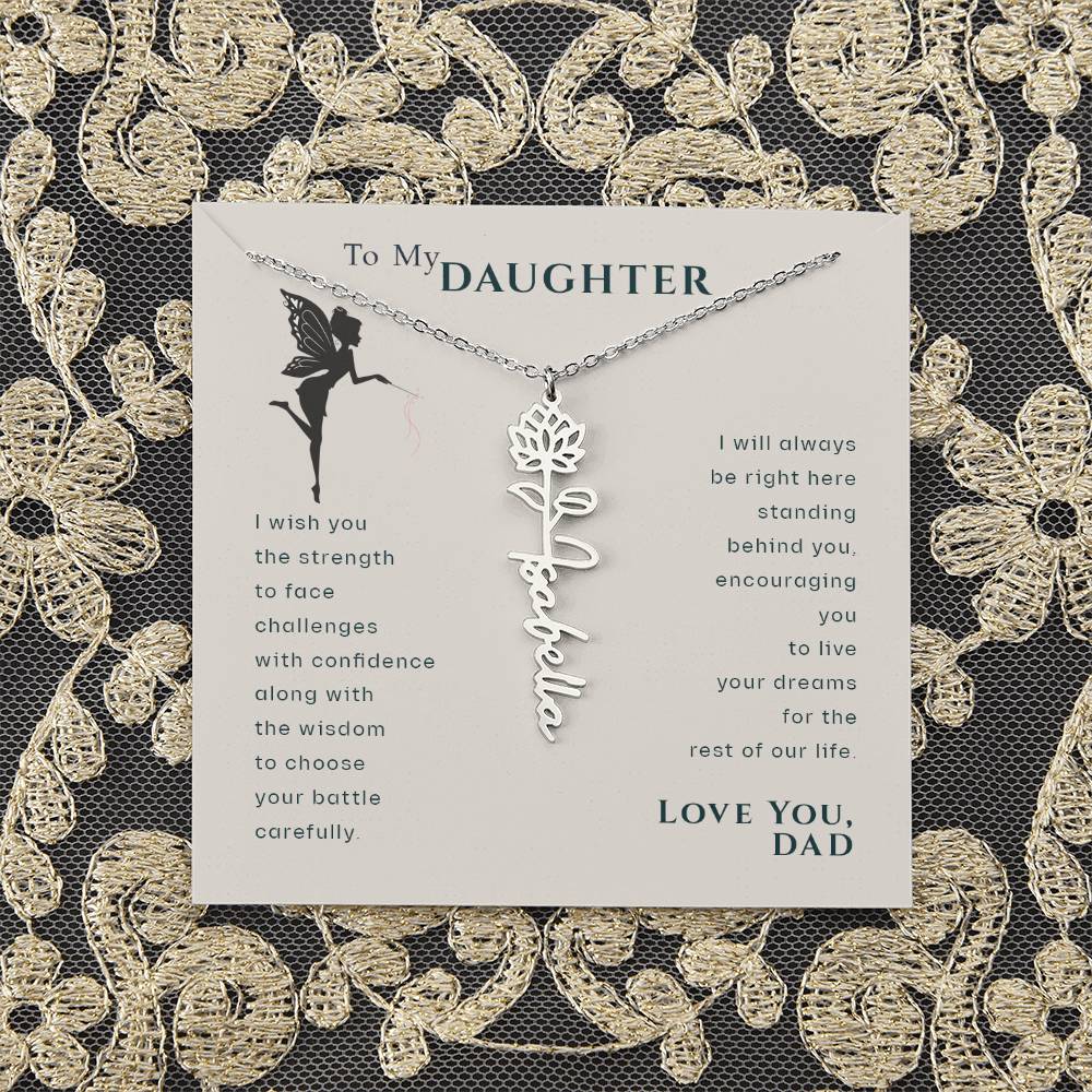 To My Daughter Birthflower Month Name Necklace, Personalized Birthday Gift for Daughter from Dad, Dad Gifts for Daughter, Daughter Necklace