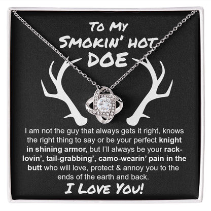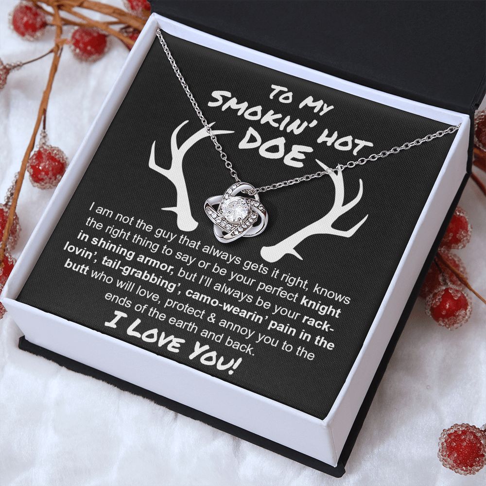 Imagine her reaction receiving this beautiful Love Knot Necklace. Representing an unbreakable bond between two souls, this piece features a beautiful pendant embellished with premium cubic zirconia crystals. Surprise your loved one with this gorgeous gift today!