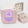 Keep your precious jewelry organized and secure in our pink jewelry box. With its customizable design printed on the top, it adds a personal touch to your storage solution. The box features multiple compartments to neatly store your rings, earrings, and more. Elevate your jewelry collection with our custom-designed pink jewelry box!